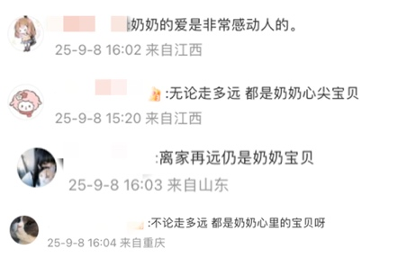 视频发布后,迅速引发众多网友共鸣:“不管长到多大、走得多远,我们永远都是爷爷奶奶手心里的宝”、“这塞的不是零食,是奶奶满满的爱”……